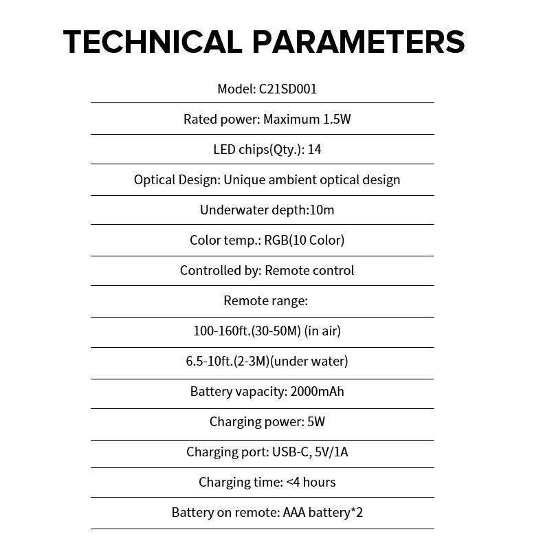 Lighting Feature: The waterproof design means you can submerge it completely underwater without worrying about damage or malfunctioning.